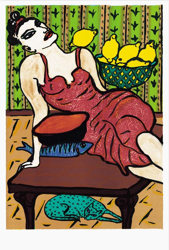 Men ofte vil beskueren kunne se kvinder med både direkte og erotisk farlighed, der er ved at sprænge rammerne på det enkelte kunstværk.