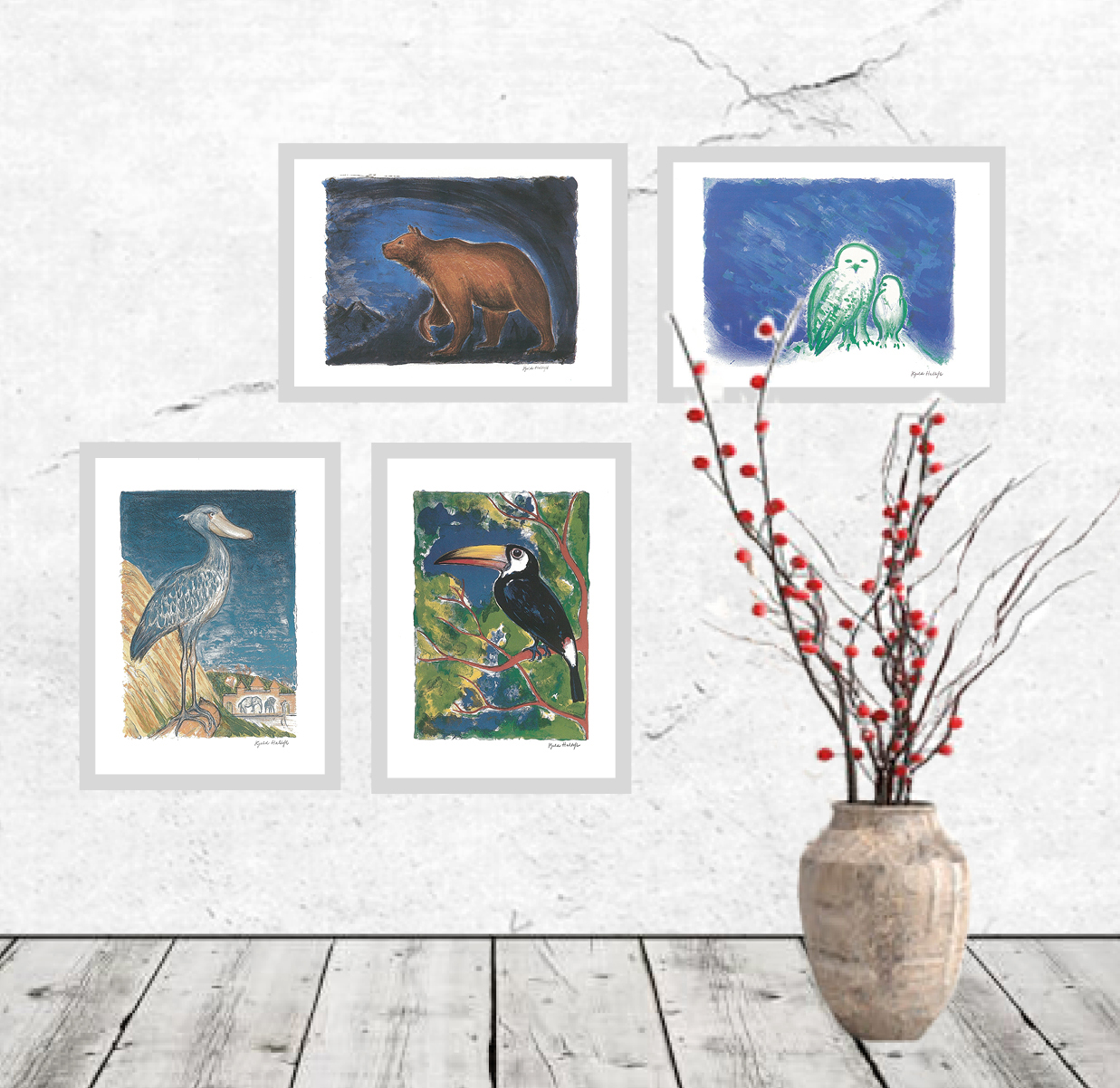 Motiverne til sine billeder finder han først og fremmest i naturens mangfoldighed, og af samtalen med ham, da Kunstklubben udbød hans litografi med Træskonæbbet, fremgik det, at han ikke havde det fjerneste imod at arbejde for miljøorganisationer.