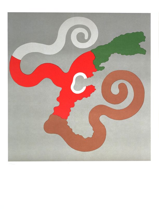 Gennem valget og gennem placeringen af farver sætter Poul Agger noget i gang. øjnene tvinges til at vandre omkring indenfor billedets firkant. Hertil bidrager også formerne eller farvefladerne, om man vil. De kan være slyngninger eller snoede spiraler, klatter det flyder ud med flossede kanter eller buede, bugtende omrids - en ø's konturer på et kort. Eller det kan være fast givne former som cirkler eller ovaler. Ja, ofte placerer Poul Agger en firkant, et kvadrat eller en trekant i sine billeder, som den faste forms forankring i alt det udflydende. Holdes blikket fast bliver formerne til figurer, der bevæger sig, og i bevægelsen lever de et selvstændig liv, personificeres, således at der hos den, der ser, op-står identifikationsmuligheder, eller associationerne myldrer frem.