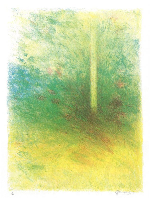 Tilsyneladende let og ligetil, men resultat af en slidsom skabelsesproces, byggende på et helt livs erfaringer. Hvor dette litografi med skoven som motiv skildrer et lukket rum, danner de to andre litografier store, åbne rum. Også her er kompositionen så enkel, som den overhovedet kan være, nemlig den vandrette horisontlinje, der skiller himmel og jord.
